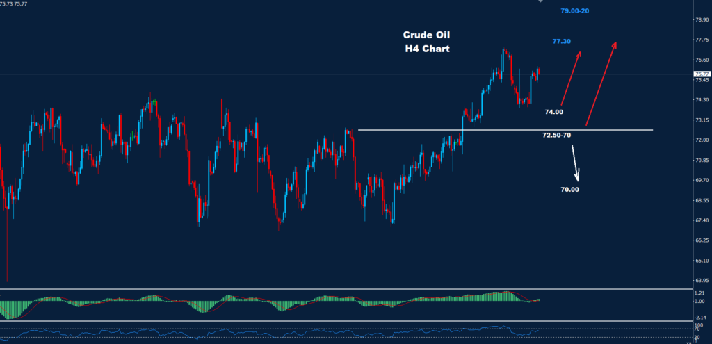 تمكن النفط الخام من اختبار منطقة الدعم 74.00 في وقت مبكر من هذا الأسبوع قبل العودة للصعود.