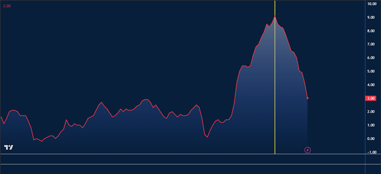 نجح الفيدرالي الأمريكي في كبح جماح التضخم منذ بداية التشديد النقدي مطلع العام الماضي. فقد سجل التضخم هبوطاً بالتزامن مع رفع الفائدة من 0.25% إلى النسب الحالية 5.25%. حيث سجلت معدلات التضخم ارتفاعاً بنسبة 3% خلال شهر يونيو مقابل 9.1% خلال يونيو 2022.