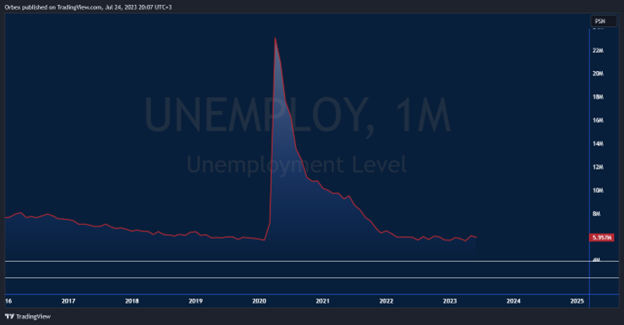 مهد سوق العمل الأمريكي الطريق أمام الفيدرالي للاستمرار في رفع الفائدة، حيث انخفضت معدلات البطالة بشكل سريع وصولاً إلى أدنى مستوياتها منذ جائحة كورونا عند 3.6% خلال يونيو 2023.