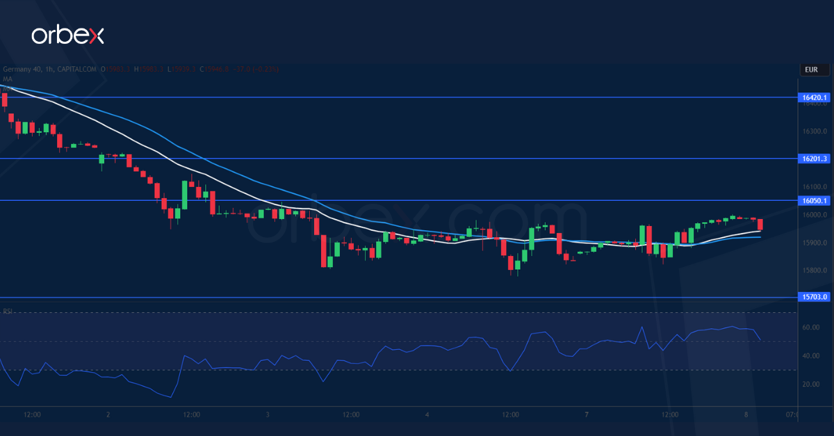 يتداول مؤشر داكس 40 الألماني بوتيرة عرضية قبل صدور أرقام التضخم من ألمانيا والولايات المتحدة هذا الأسبوع. وقد أدى انخفاض المؤشر دون المستوى النفسي 16000، والذي يتزامن مع نقطة منخفضة ومؤشر المتوسط المتحرك لمدة 30 يومًا، إلى وضع المشترين في وضع حرج.