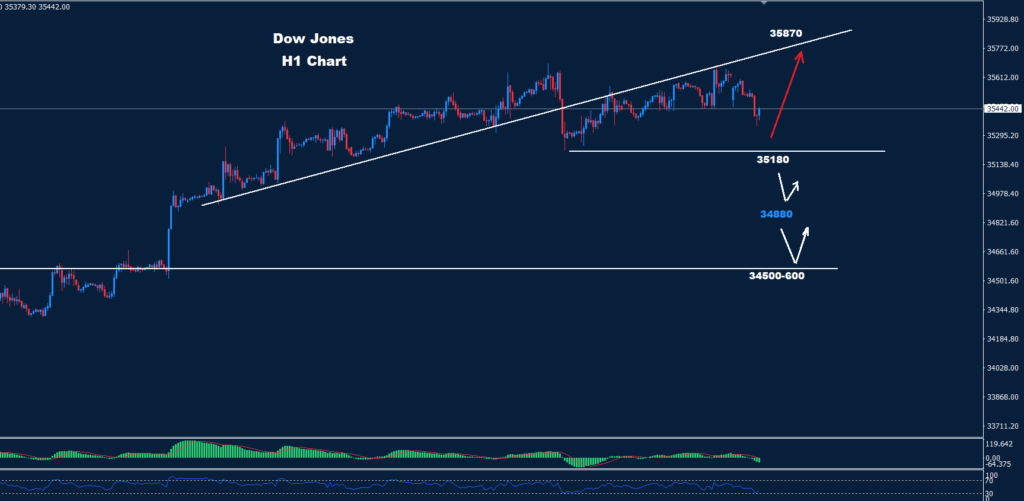 تحت مستويات 35180 قد تتزايد ضغوط الهبوط على السوق حيث يتواجد الدعم عند 34880 و 600-34500