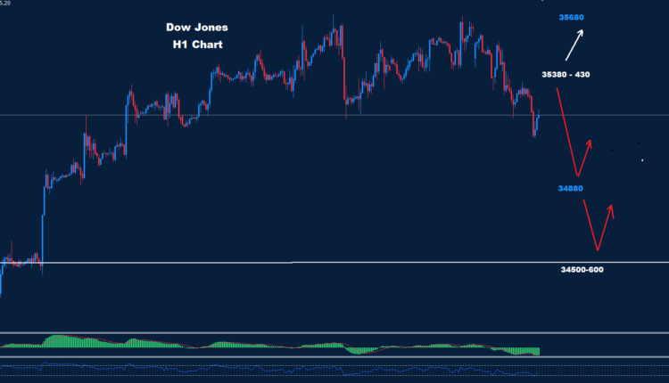 تمكن الداو من ضرب تصحيح ارتدادي نحو مستويات 35350 حتى الان