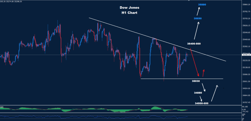 كما نصحنا من قبل. تمكن مؤشر الداو من الاحتفاظ بالصفقات تحت المقاومة 500-35400 مما دفع السوق عدة مرات لاختبار منطقة الدعم 35030 في الأيام القليلة الماضية