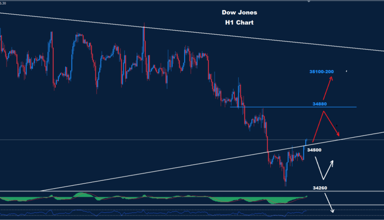تمكن مؤشر داو جونز في الساعة الماضية من الارتداد فوق المقاومة 600-34500 بينما لا يزال السوق بحاجة لرؤية افتتاح جلسة التداول الامريكية اليوم