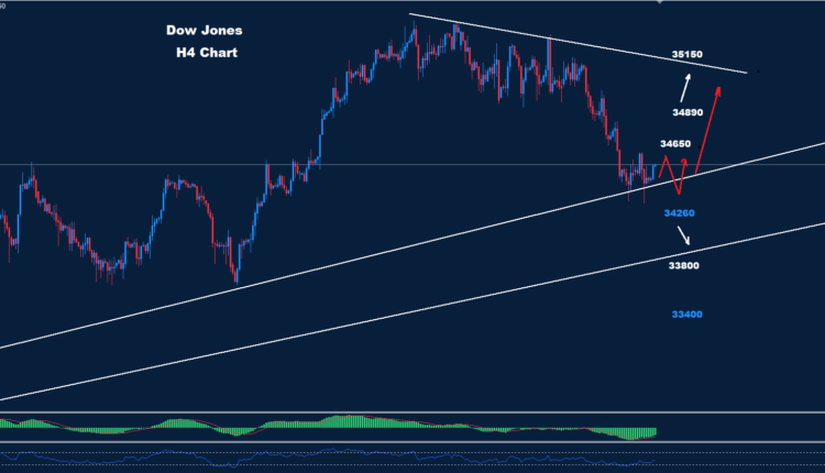 بدأت مؤشرات داو جونز بإظهار بعض القوة لمزيد من التصحيح الارتدادي نحو منطقة 35000