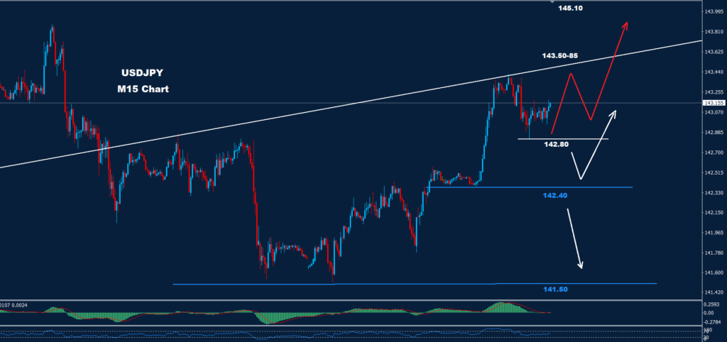 وتحت 142.40 من المتوقع حدوث المزيد من الانخفاض مع وجود دعم حول 141.50