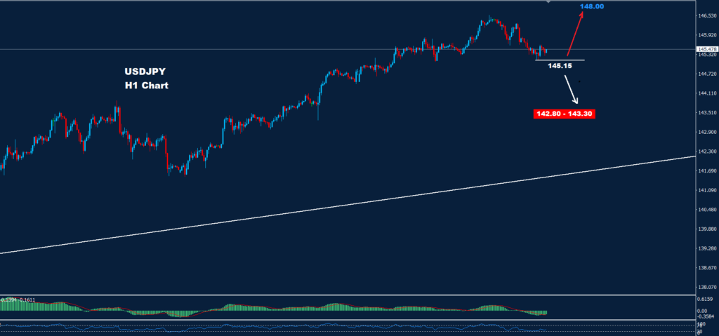 وتحت 145.15 ، قد تضرب فرصة تصحيح هبوطي أبعد السوق باتجاه مناطق 142.80-143.30