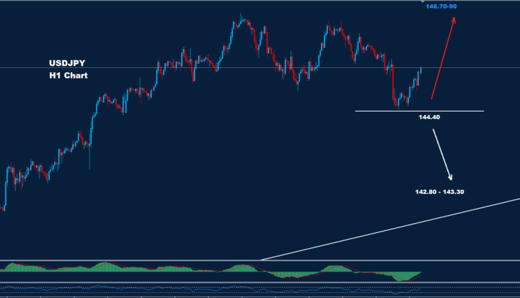تمكن الدولار الأميركي مقابل الين الياباني من الانخفاض إلى ما دون 144.90 بينما تمكن الدعم الثاني 144.40 من دفع السوق لحركة ارتدادية