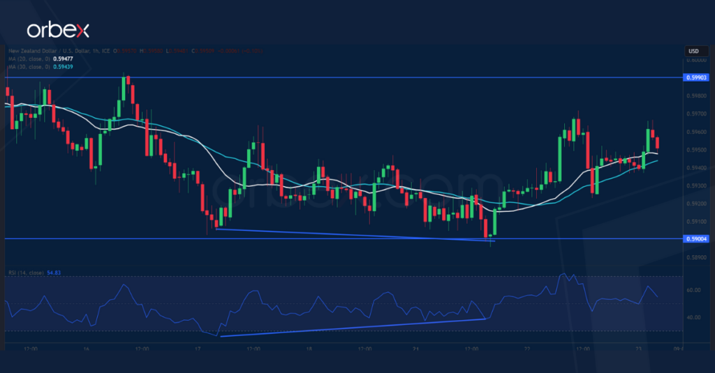 ارتفع الدولار النيوزيلندي بعد تفوق المبيعات بالتجزئة عن التوقعات في الربع الثاني. فيما يحاول زوج النيوزيلندي/دولار الاستقرار فوق مستوى 0.5900 ويعكس تباين مؤشر القوة النسبية الصاعد إلى تباطؤ زخم عمليات البيع، مما يفتح الباب أمام احتمالية ارتداد.