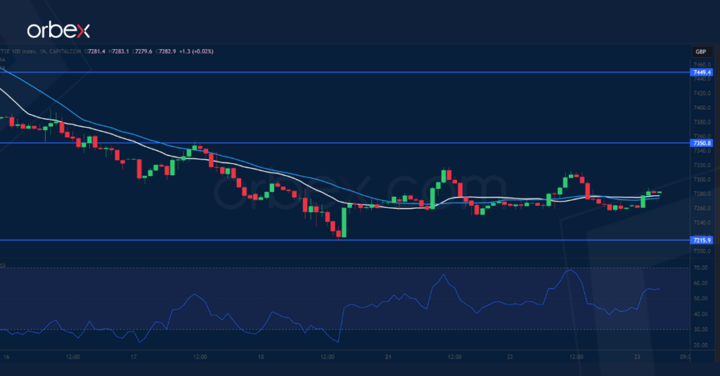 هذا وتمتد المنطقة الحرجة للطلب حتى أدنى مستوى في مارس عند 7200، وفي حال فشله في الاستقرار أعلاها، فسيدفعه ذلك إلى هبوط صوب مستوى 7000. ومع استقرار المؤشر حول 7215، فإن 7350 على الرسم البياني على الإطار الزمني ساعة هو أول مستوى مقاومة يجب تجاوزها لمنح الجانب الشرائي فرصة للانتصار، ولكن قد يكون من الصعب تجاوز مستوى الدعم المتحول المقاومة عند 7450.