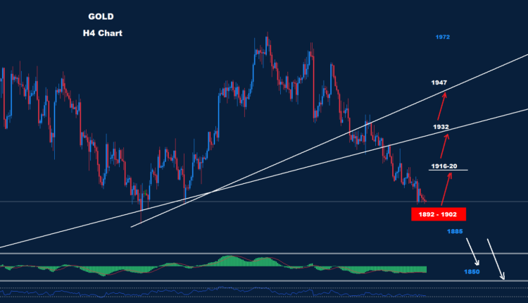 تمكن الذهب من الحفاظ على ضغوط الهبوط حيث تمكن من تحقيق الهدف ومنطقة الدعم 1892-1902