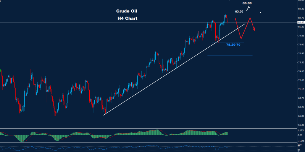 تمكن النفط الخام من الاحتفاظ بالتداولات دون مستوى المقاومة 83.50 حيث تمكن من التوجه نحو حركة تصحيح هبوط واختبار منطقة الدعم 79.90-80.50