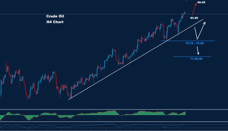 تمكن النفط الخام من الارتفاع فوق مستوى المقاومة 83.50 مما قد يؤدي إلى مزيد من التقدم في السوق