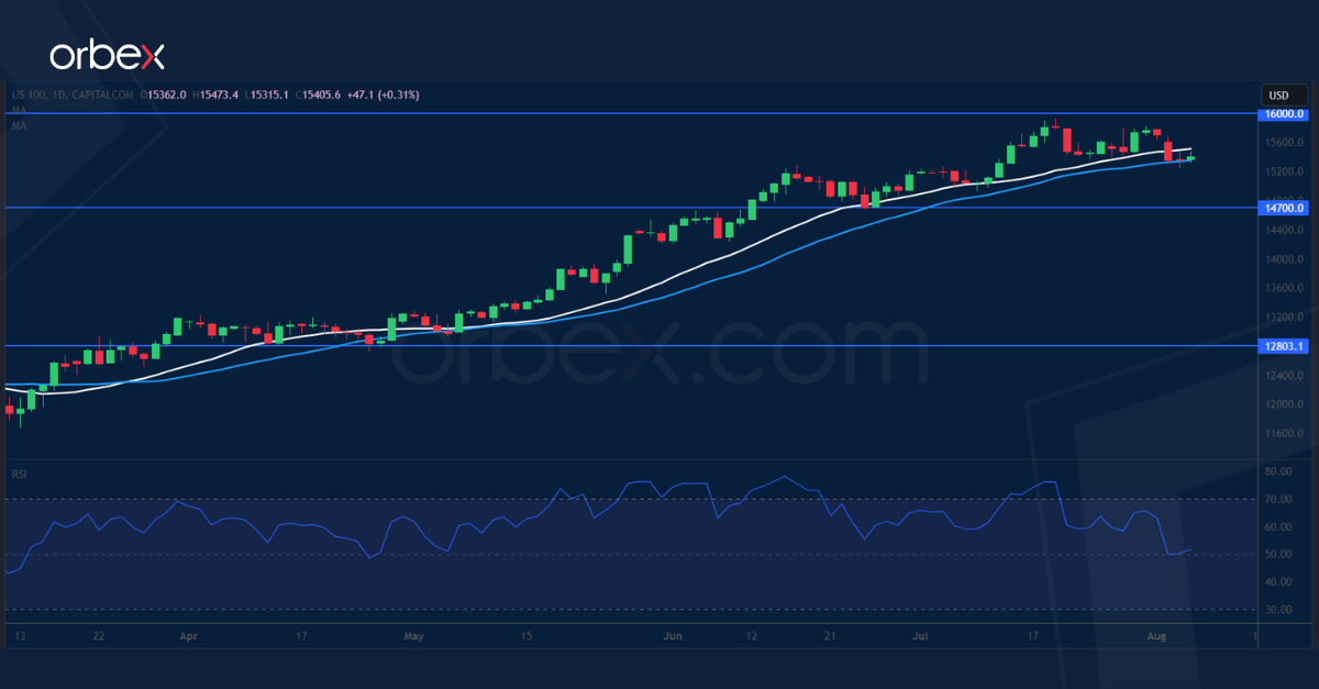 وبخلاف ذلك، ربما تؤثر مجموعة مؤشرات التضخم الاستهلاكي القادمة على السوق، وإذا استمرت في الانخفاض بشكل مستدام، فقد تدفع مؤشر ناسداك 100 صوب مستويات تتخطى 16000 مع استقرار أول دعم سيتلقاه عند 14700.