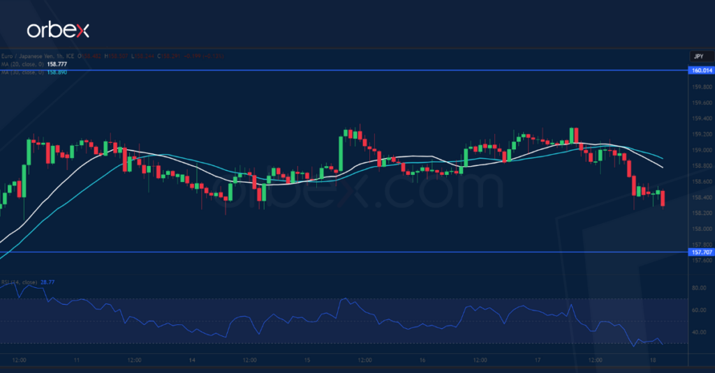 ومع استمرار الارتفاع، قد ينضم المزيد من متابعي الاتجاه ويدفعون السعر نحو حاجز 160.00. أما وفقاً للرسم البياني على الإطار الزمني ساعة، فيتضح أن مستوى 157.70 شهد تراكماً ووفر دعماً ثابتاً للعملة الأوروبية.