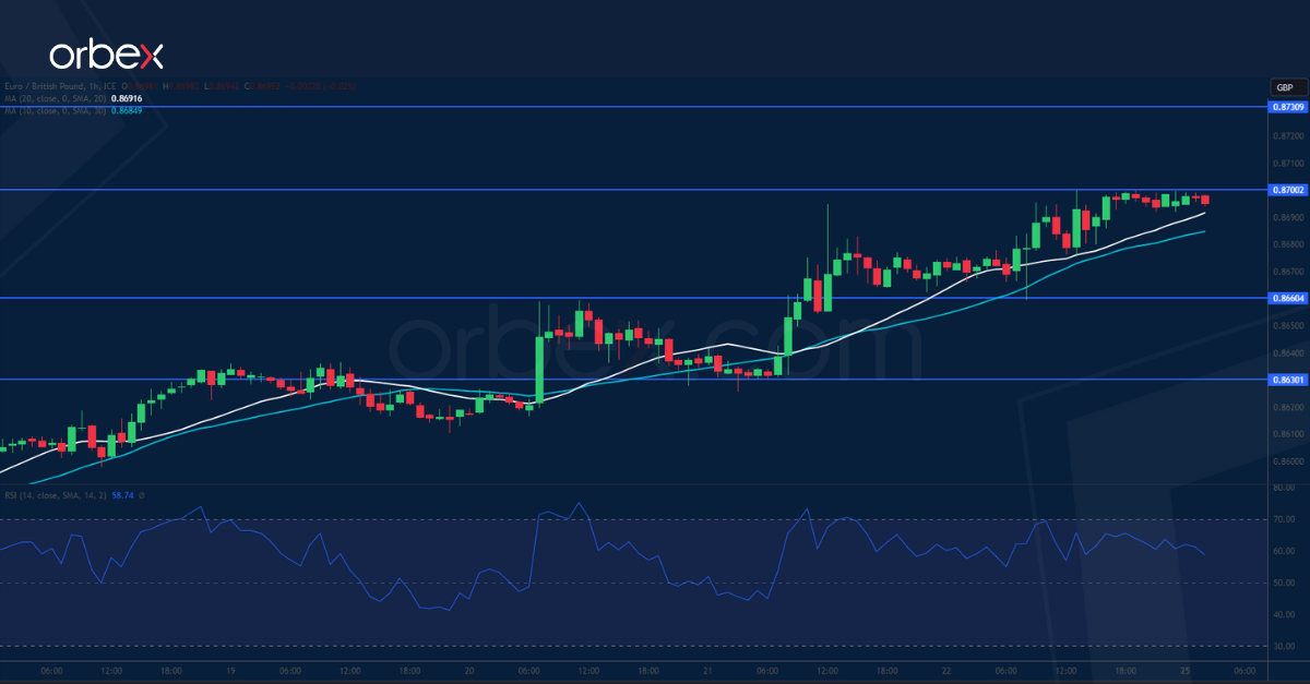 يبدو أن الجنيه الإسترليني في طريقه لإفساح المجال لليورو كي يحقق مزيداً من الارتفاع بعد أن جاءت نتائج مبيعات التجزئة ومؤشر مديري المشتريات في قطاع الخدمات دون التوقعات. ويشير تجاوز اليورو لقمة أغسطس ٠.٨٦٧٠ على الرسم البياني اليومي، وتقاطع المتوسط المتحرك الإيجابي إلى عودة اليورو بقوة بعد حركة تصحيح طويلة استمرت ٥ أشهر. وقد يشهد الزوج انتعاشاً مستدام أعلى المستوى ٠.٨٧٣٠، إذا تمكن المشترين في تخطي العروض قرب قمة يوليو ٠.٨٧٠٠. ولكن تعمق مؤشر القوة النسبية المتكرر في منطقة ذروة الشراء قد ينذر بتراجع الزوج، وفي حال تحقق ذلك سيمثل المستويين ٠.٨٦٦٠ و٠.٨٦٣٠ مستويات دعم جديدة.