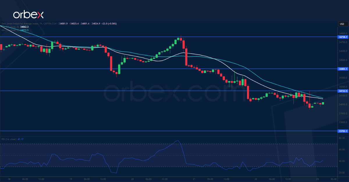 يتراجع مؤشر “داو جونز” مع استيعاب المستثمرين لحقيقة أن معدلات الفائدة المرتفعة والتي تعيق النمو الاقتصادي ستبقى لفترة طويلة. وقد انتهى الارتداد الأخير الذي اتخذ شكل M على الرسم البياني اليومي، مع هبوط المؤشر دون قاع أغسطس ٣٤٠٥٠، مما يشكل ضغطاً على من اشتروا الانخفاضات الأخيرة. وقد تدفع جولة جديدة من عمليات البيع المؤشر نحو القاع المزدوج الذي تشكل الصيف الماضي عند ٣٣٧٠٠، وهو مستوى جوهري يتعين صموده للحفاظ على المسار الصاعد في المدى المتوسط. هذا ويعتبر الدعم الذي تحول إلى مقاومة عند ٣٤١٥٠ هو العائق الأول الذي يتعين تخطيه ليتبدل الوضع لصالح المشترين.