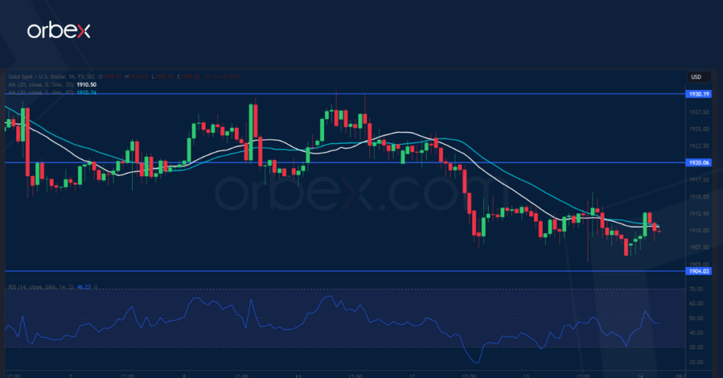 شهدت أسعار الذهب مزيداً من التراجع على خلفية ارتفاع أرقام التضخم التي تدعم الدولار الأمريكي. وقد زاد إخفاق السعر في الصمود أعلى مستوى ١٩١٦ من حذر المشترين، مما جعلهم يتخذون موقف دفاعي، لا سيما مع كفاح الذهب المستمر لنيل عروض الشراء. ويتعين مراقبة المستوى ١٩٠٤، حيث كانت بداية ارتفاع أواخر أغسطس لرؤية ما إذا رغبة الشراء ستظهر مجدداً، ومن ثم سيكون لزاماً على المشترين تجاوز مستوى ١٩٢٠، يليها قمة التأرجح المحدودة عند ١٩٣٠ لاستعادة السيطرة. وفي حال شهد الذهب مزيداً من التراجع مقابل الدولار، سيمثل قاع أغسطس ١٨٩٠ دعماً جوهرياً يتعين صموده للحفاظ على استقرار الذهب، والحيلولة دون هبوطه إلى ١٨٥٠.