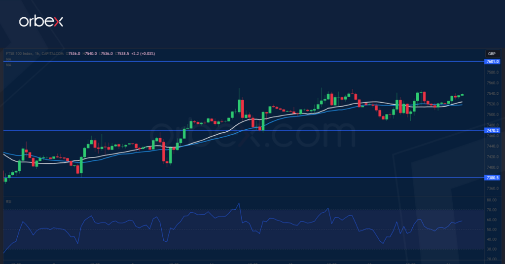 عرقلت أرقام الناتج الإجمالي المحلي في المملكة المتحدة والتي أظهرت انكماشاً أكبر من المتوقع في يوليو تقدم مؤشر “فوتسي ١٠٠”. ويتحرك المؤشر على الرسم البياني اليومي ضمن نمط راية توطيد طويلة الأمد تشكلت منذ فبراير الماضي، مع منطقة الطلب عند ٧٢٢٠ التي تم اختبارها لثلاث مرات. ولكن تجاوز المؤشر أعلى قمة الارتفاع الأخير ٧٥٢٠ يعكس رغبة المشترين في إعادة المؤشر إلى المسار الصحيح. وقد يكون المستوى ٧٦٠٠ هو آخر حصون البائعين، إذ قد يسهم اختراقه في استمرار الاتجاه الصاعد على المدى المتوسط. ولكن لا يستبعد أن يشهد المؤشر تراجعاً قوياً نتيجة لعمليات جني الأرباح ومراكز البيع الجديدة، وسيمثل ٧٤٧٠ مستوى الدعم الأول حينها.