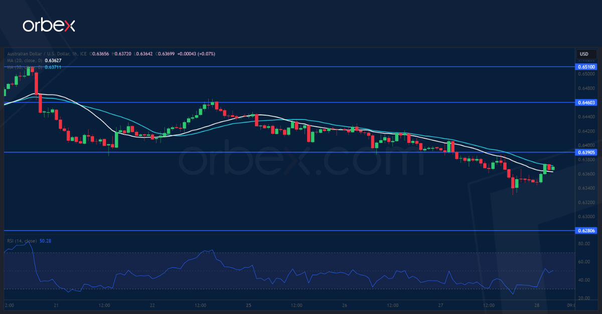 تسببت قراءة التضخم عن شهر أغسطس والتي جاءت مماثلة للتوقعات بتراجع الدولار الأسترالي أكثر مقابل نظيره الأمريكي. واستمر الضغط السلبي على الزوج بعد انخفاضه دون مستوى الدعم اليومي ٠.٦٥٠٠. ليعاود الزوج الهبوط في منطقة العرض التي تم تشكيلها حديثًا بعد محاولتي ارتداد متتاليتين، وهو ما يشير إلى أن الهبوط هو المسار الأقل مقاومة. ومن شأن الانخفاض دون القاع الأخير ٠.٦٣٦٠ أن يعرّض الدولار الأسترالي لجولة جديدة من عمليات البيع، مع احتمالية استهداف قاع نوفمبر الماضي عند ٠.٦٢٨٠. وفي حال تمكن الزوج من الارتداد مجدداً، سيمثل المستوى ٠.٦٣٩٠ أولى مستويات المقاومة.