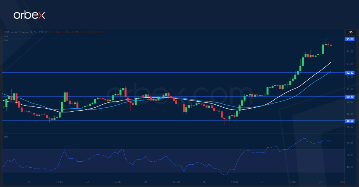 ارتفع خام غرب تكساس الوسيط بعد أن فاقم الانخفاض الحاد في المخزون الأمريكي من المخاوف بشأن شح الإمدادات العالمية. وقد برهن القاع المزدوج ٨٨.٥٠ أعلى المتوسط المتحرك البسيط لمدى ٢٠ يوماً قوته كدعم. وأكد الإغلاق مجدداً أعلى ٩١.٢٠، وهو الدعم الذي تحول إلى مقاومة ونجح في صد انتعاش الأسبوع الماضي، عودة المشترين للساحة. وربما يسهم تجاوز القمة الأخيرة عند ٩٢.٥٠ والذي قد يعتبر أخر معقل للبائعين، في امتداد نطاق الارتفاع نحو ٩٥.٠٠. ومع تعمق مؤشر القوة النسبية في منطقة ذروة الشراء، فقد نشهد تراجعاً في الأسعار، والتي سيتصدى لها الدعم المباشر ٩٢.٣٠.