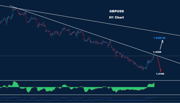 فوق 1.2305، فإن مزيداً من التقدم لاختبار منطقة المقاومة 20-1.2400 قد يضرب السوق.