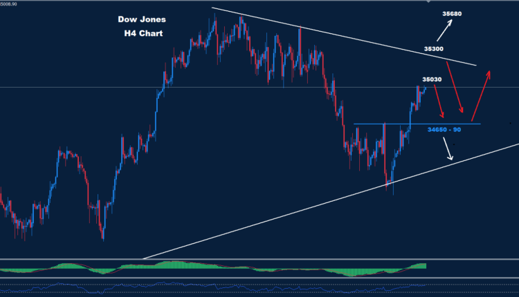 وطالما استمر السوق في الحفاظ على التداولات فوق منطقة 90-34650، فمن المتوقع حدوث تقدم آخر نحو منطقة 300-35200.