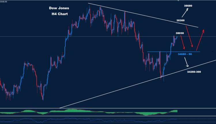 وطالما استمر السوق في الحفاظ على التداولات فوق منطقة 90-34650، فمن المتوقع حدوث تقدم آخر نحو منطقة 300-35200.