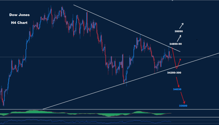 تمكن مؤشر داو جونز من إضافة المزيد من التقدم فوق المقاومة 34750 بينما فشل في الاختراق فوق مقاومة الترند 34890.