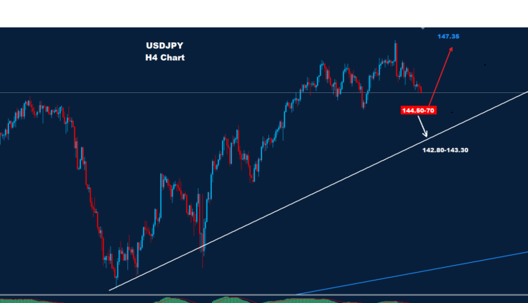 تحت 144.50 قد تضرب فرصة لمزيد من التراجع والهبوط حيث يقع الدعم عند 143.70 و142.80.