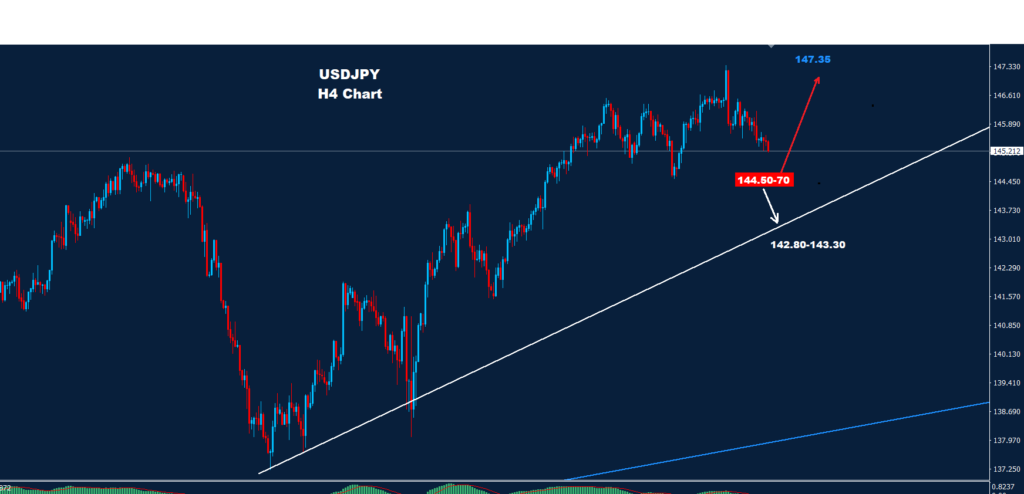 تحت 144.50 قد تضرب فرصة لمزيد من التراجع والهبوط حيث يقع الدعم عند 143.70 و142.80.