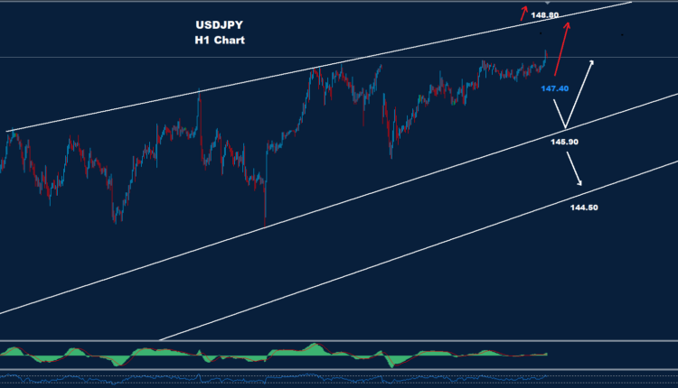 تحت 147.40 فإن المزيد من الهبوط قد يضرب السوق حيث الدعم 145.90 قد يدفع لموجة تقدم أخرى.