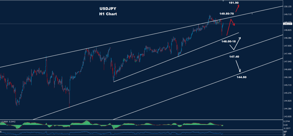 تمكن الدولار الأميركي مقابل الين الياباني من تحقيق بعض الحركة التصحيحية الهبوطية، فيما تمكن الدعم 15-148.00 حتى الآن من الحفاظ على موجة الاتجاه الصاعد.