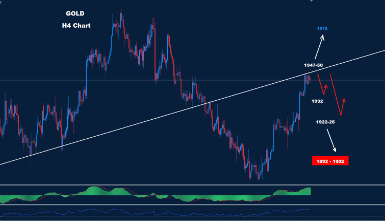 كما نرى على الرسم البياني للمدى اليومي، يواجه السوق ترند مقاومة حول مستويات 50-1947، مما قد يدفع لبعض التصحيح الهبوطي نحو مناطق 1932 أو 1922 قبل التقدم مرة أخرى في السوق.