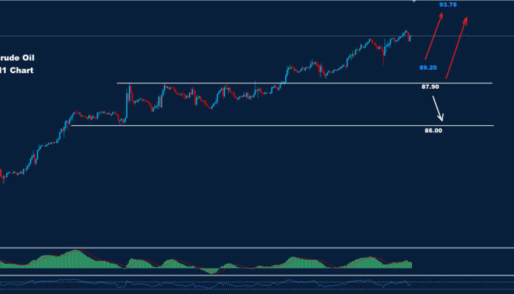 تمكن النفط الخام من الحفاظ على التقدم كما نصحنا في الأسبوعين الماضيين بينما تمكن من تحقيق الهدف 90.10 و91.15.