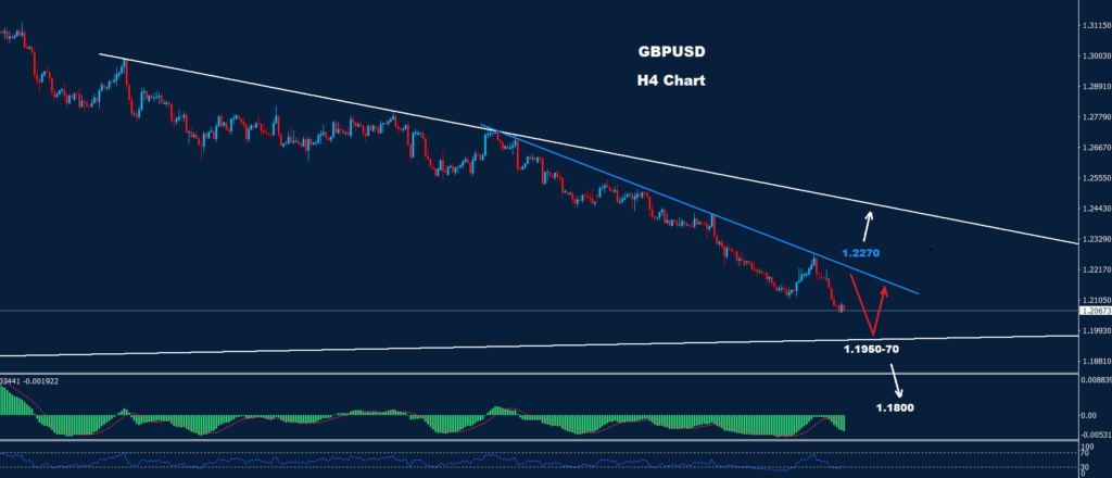 كما نرى على الرسم البياني، لا يزال الجنيه الإسترليني يواجه ضغطاً هبوطياً، حيث تقع مستويات الدعم عند مناطق 70-1.1950 مما قد يدفع نحو التصحيح الارتدادي.