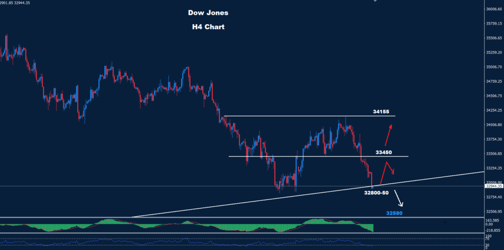 تحت مستويات 32800 من المتوقع حدوث انخفاض آخر حيث يقع الدعم عند 32580 و32290.
