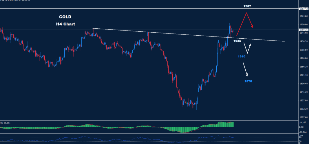 تمكن الذهب من الارتفاع فوق مستوى 1952 مما قد يوفر مجالًا أكبر للتقدم