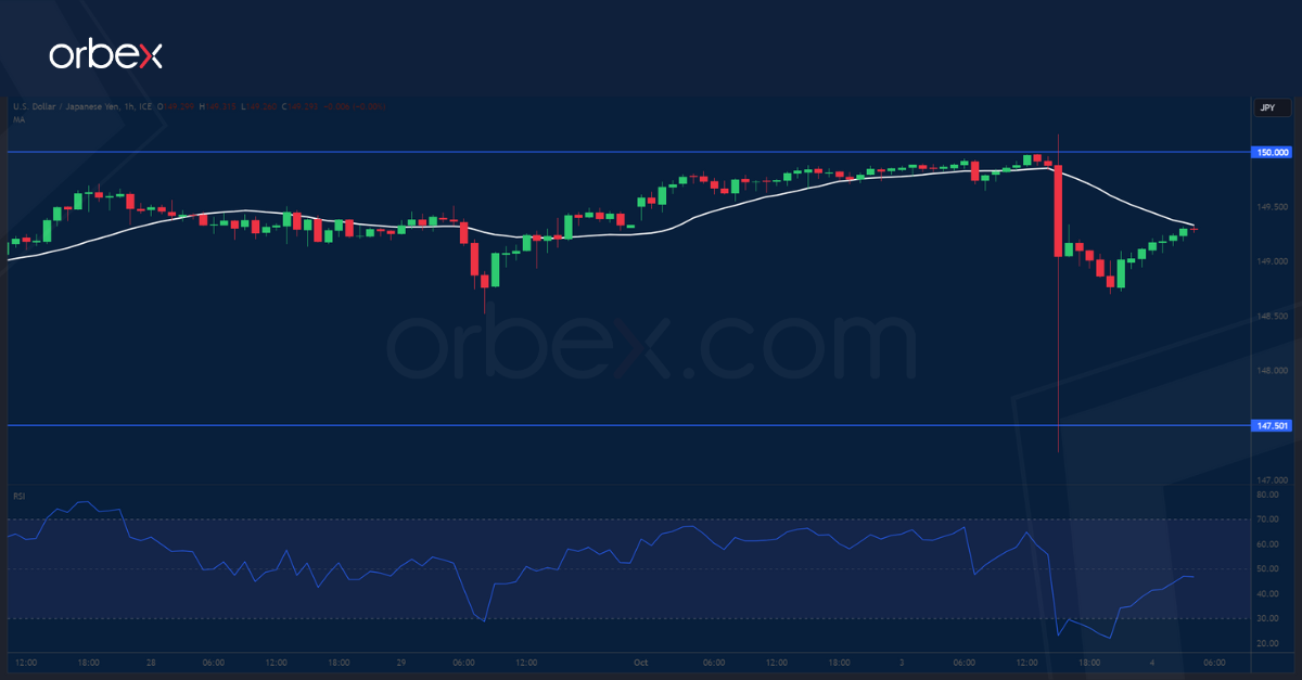 شهد الين الياباني ارتداداً قوياً أمام الدولار نتيجة للشائعات حول إمكانية تدخل السلطات اليابانية في سوق العملات. وكان المتداولون على أهبة الاستعداد مع عودة الزوج ببطء إلى المستوى النفسي ١٥٠.٠٠ والذي شهد تدخل الحكومة اليابانية في مثل هذا الوقت. وفي حين يعد الفتيل العلوي علامة على الرفض، تمكن الذيل السفلي الطويل نحو المستوى ١٤٧.٥٠ من اخراج عدد من المراكز قصيرة المدى. ولا يزال المتوسط المتحرك البسيط لمدى ٢٠ يوماً يمثل دعماً ديناميكياً من منظور الرسم البياني اليومي، وقد يواجه المشترين تحدياً حقيقياً إذا ما هبط الزوج ودخل في نطاق ١٤٤.٦٠ و١٤٤.٠٠.