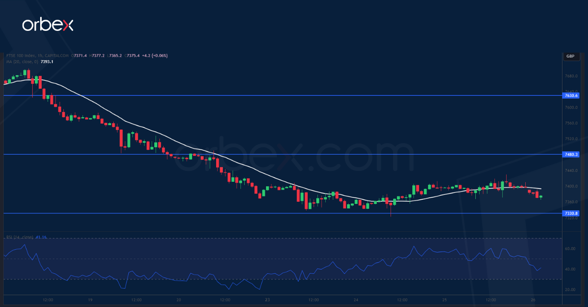 انتعش مؤشر “فوتسي ١٠٠ والذي يعتمد بشكل كبير على السلع بفعل أخبار تدابير التحفيز الجديدة الواردة من الصين. وكان انخفاض المؤشر دون الدعم اليومي ٧٤٠٠  قد وضع حداً لمحاولة الارتداد التي بدأت أوائل سبتمبر، وهو ما جعل المشترين يتخذون وضع الدفاع. ويشير الارتفاع التدريجي في السعر إلى جني البائعين على المدى القصير للأرباح. وأصبح المستوى ٧٤٨٠ يمثل المقاومة المباشرة التي يمكن أن يسعى عندها البائعين لمقاومة الارتداد. ووحده اختراق المستوى ٧٦٣٠ من شأنه أن يسهم في تفاؤل المتداولين في السوق. بيد أنه في حال انخفض المؤشر دون المستوى ٧٣٣٠، فقد يشجع ذلك على جولة جديدة من عمليات البيع.