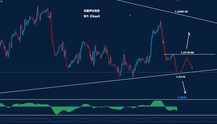 تمكن الجنيه الإسترليني مقابل الدولار الأميركي أيضاً من تحقيق تصحيح هبوطي حيث يختبر الآن الدعم الثاني 1.2110.