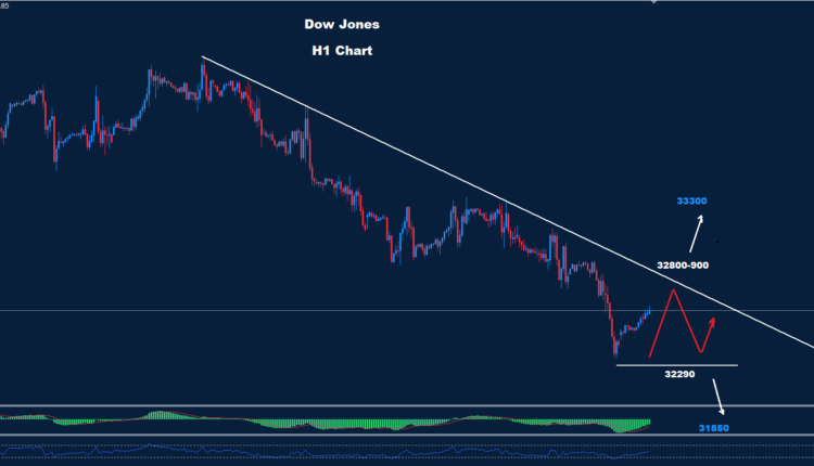 كما نرى على الرسم البياني، يواجه السوق دعماً حول 32290 بينما يواجه مستوى مقاومة حول 900-32800 مما قد يخلق منطقة تداول.
