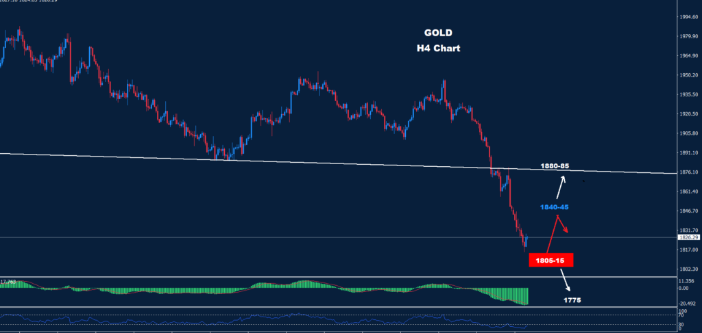 تحت مستويات 1805 من المتوقع حدوث المزيد من الانخفاض نحو 1775.