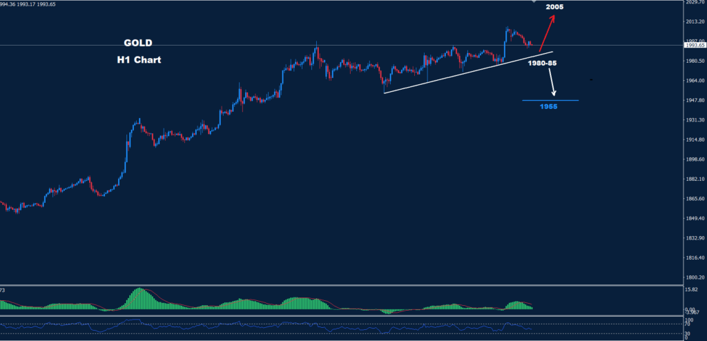 تحت مستويات 1980 من المتوقع مزيداً من التراجع و الهبوط قد يضرب السوق حيث قد تدفع منطقة الدعم 55-1950 إلى حركة تقدم أخرى.