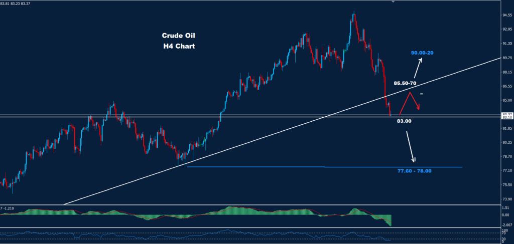 تمكن النفط الخام من الانخفاض إلى ما دون مستوى الدعم 85.00 أمس، حيث تمكن السوق من إضافة المزيد من الحركة الهبوطية.