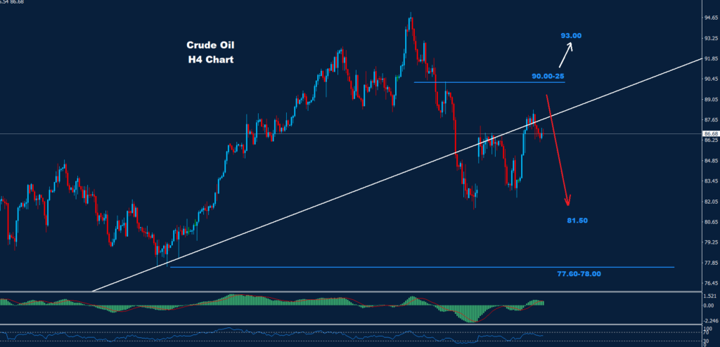 تمكن النفط الخام من الحفاظ على الارتفاع حيث تمكن من تسجيل أعلى سعر عند 89.87 واقترب من منطقة المقاومة 25-90.00.