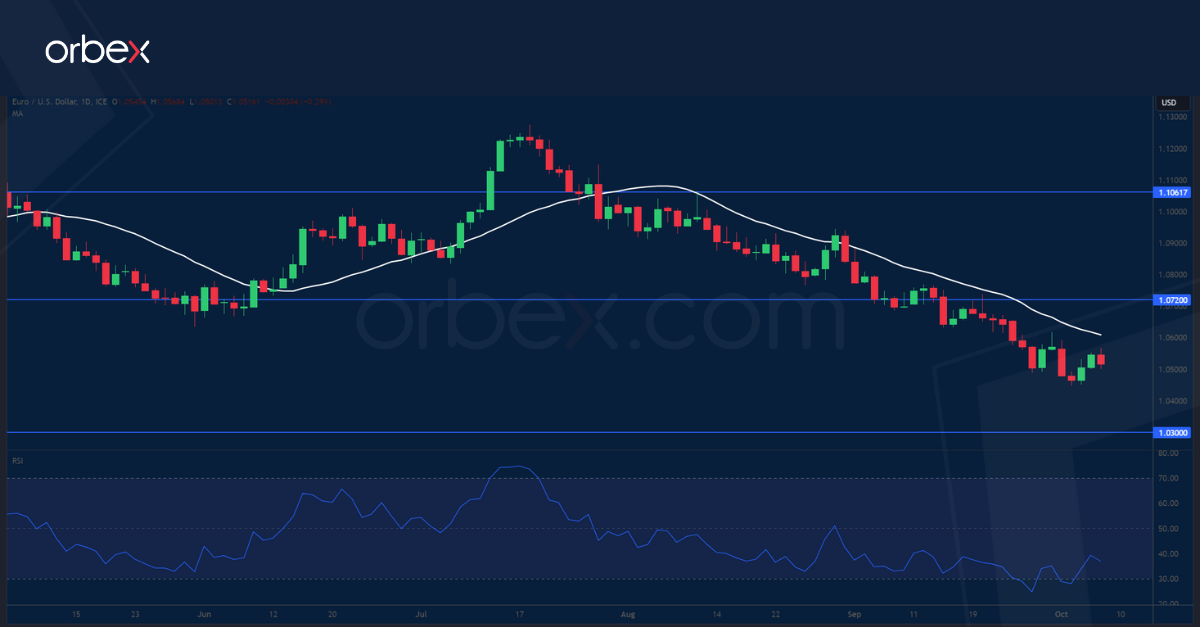 هبط اليورو مقابل الدولار الأمريكي بسبب توقعات المتداولين بأن الاقتصاد الأمريكي سيكون قوياً بما يكفي لتحمل بيئة أسعار فائدة مرتفعة. ومع إشارة كلا الجانبين الأمريكي والأوروبي إلى تعليق رفع أسعار الفائدة الخاصة بهما، تحول تركيز المتداولين والمستثمرين في السوق إلى العوامل الاقتصادية الحقيقية مثل النمو الاقتصادي والتضخم والوظائف والمؤشرات الاقتصادية الأخرى، بدلاً من التركيز بشكل أساسي على تغييرات معدلات الفائدة. وقد يواجه اليورو صعوبة في المنافسة مع الدولار القوي الذي يدعمه اقتصاد أكثر قوة وعوائد خزانة قريبة من ٥٪. كما أن توقعات الركود في مختلف أنحاء منطقة اليورو من شأنها أن تقوض جاذبية العملة الموحدة خصوصًا إذا عادت أسعار الطاقة للارتفاع مجددًا في الشتاء. وفيما يمثل المستوى ١.٠٣٠٠ الدعم التالي، تحول المستوى ١.٠٧٢٠ إلى مقاومة جديدة.