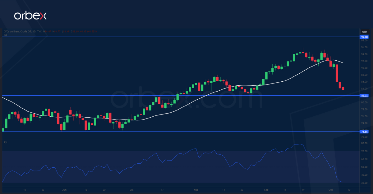 يتراجع خام برنت بسبب تحفظ المتداولين نظراً لتقلبات الطلب على السلعة. ولم يتمكن تمديد خفض الإنتاج من قبل كل من المملكة العربية السعودية وروسيا حتى نهاية العام من دعم حركة الأسعار كما كانوا يأملون، وهو ما يشير إلى حذر المتداولين من عدم اليقين بشأن مستقبل الطلب على النفط. ومع تعليق البنوك المركزية الكبرى لرفع أسعار الفائدة، فإن أصحاب النظرة المتشائمة يتوقعون أن يحدث المزيد من التدهور في الاقتصاد مع اتخاذ الشركات والمستهلكين إجراءات تقشفية. كما أن الطلب الضعيف في الولايات المتحدة والذي أكدت عليه أحدث بيانات إدارة معلومات الطاقة، منح المشترين فرصة لجني الأرباح بعد ارتفاع دام ثلاثة أشهر. وأصبح ٨٢.٠٠ هو أقرب دعم، في حين يتعين تجاوز المقاومة الرئيسية ٩٩.٠٠ قبل تمكن الأسعار من تحقيق مزيد من الارتفاع.