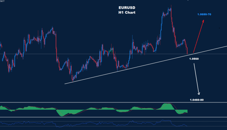 تمكن اليورو من الانخفاض تحت مستوى الدعم 1.0610 حيث يختبر الآن ترند الدعم حول 1.0560.
