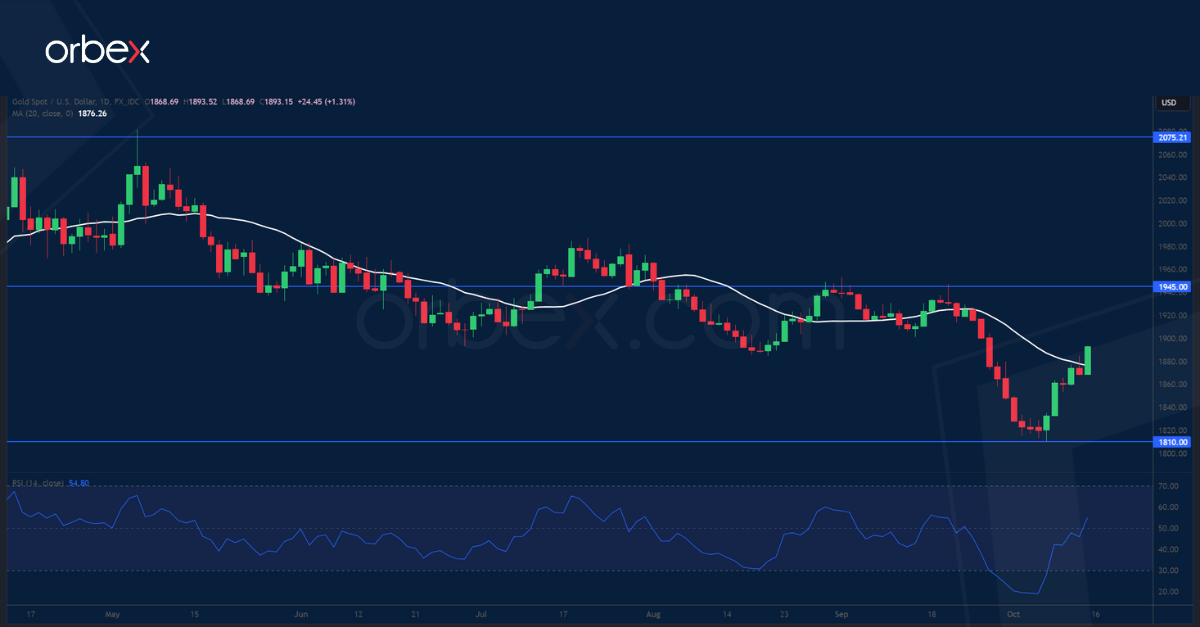 تنتعش أسعار الذهب تزامناً مع تراجع عائد سندات وزارة الخزانة الأمريكية لأجل ١٠ سنوات من أعلى مستوى لها في ١٦ عاماً. وكما الأصول الأخرى، استفاد الذهب من تراجع الدولار الأمريكي بشكل عام في أعقاب التعليقات التي اتسمت بالحذر من قبل مسؤولي الاحتياطي الفيدرالي، والتي ألمحت إلى عدم وجود حاجة لزيادة أسعار الفائدة، ما تسبب بتراجع العوائد واستعادة الذهب الذي لا عائد لجاذبيته. ومن ناحية أخرى، ربما كان عدم اليقين بشأن النمو العالمي، كما أقر صناع السياسات في الولايات المتحدة وتجدد الصراع في الشرق الأوسط، من الأسباب التي عززت بعض عمليات شراء الذهب الذي يعد ملاذًا آمناً. وفي حين أن المستوى ١٨١٠ يعد دعماً قوياً، يتعين تجاوز المستوى ١٩٤٥ قبل أن تتمكن أسعار الذهب من مواصلة الارتفاع.